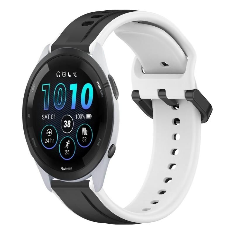 Για το Garmin Forerunner 265 22 χιλιοστά κυρτό βρόχο δύο χρωμάτων σιλικόνης ρολόι μπάντα (μαύρο + λευκό)