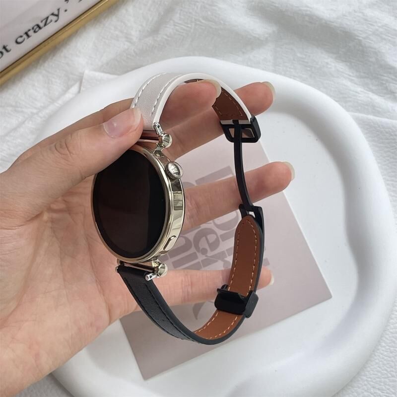 Για Garmin Forerunner 265 22mm λεπτό μαγνητική πόρπη δερμάτινο λουράκι ρολογιού μικροϊνών (Μαύρο+Απρικό)