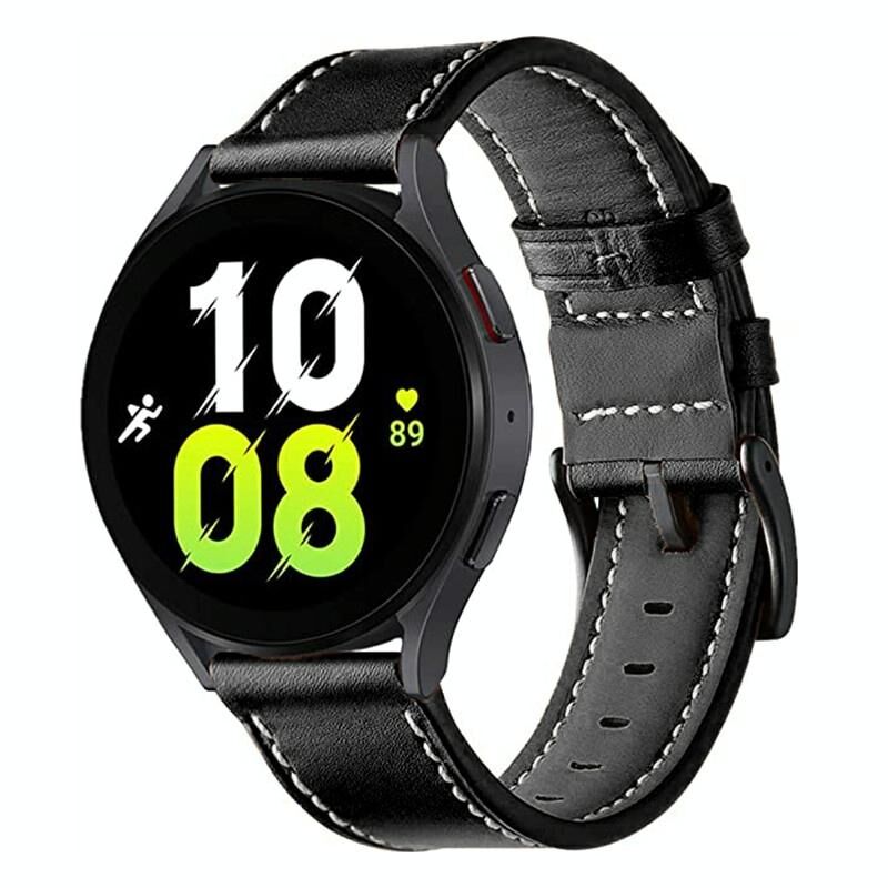 Για Garmin Forerunner 265 / 255 / Vivoactive 4 / Venu 2 22mm ραφή μαύρο πόρπη γνήσιο δερμάτινο λουράκι ρολογιού (μαύρο)