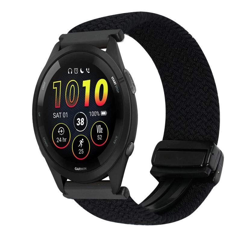Για Garmin Forerunner 265 Music 22mm μαγνητική πόρπη πλεκτή ζώνη ρολογιού (μαύρο)