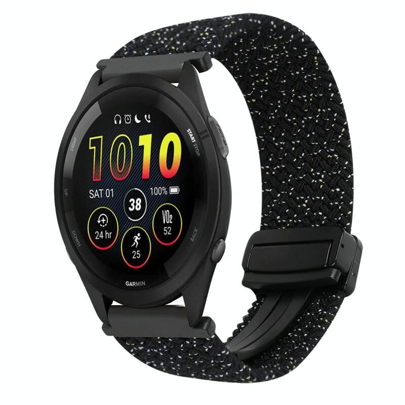 Για Garmin Forerunner 265 Μουσική 22mm μαγνητική πόρπη πλεκτή ζώνη ρολογιού (Μαύρο αστέρια)
