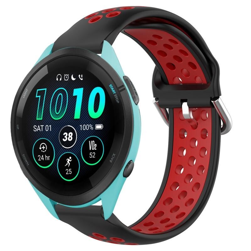Για το Garmin Forerunner 265 Music 22mm διάτρητη αναπνεύσιμη αθλητική ζώνη ρολογιού σιλικόνης (μαύρο + κόκκινο)