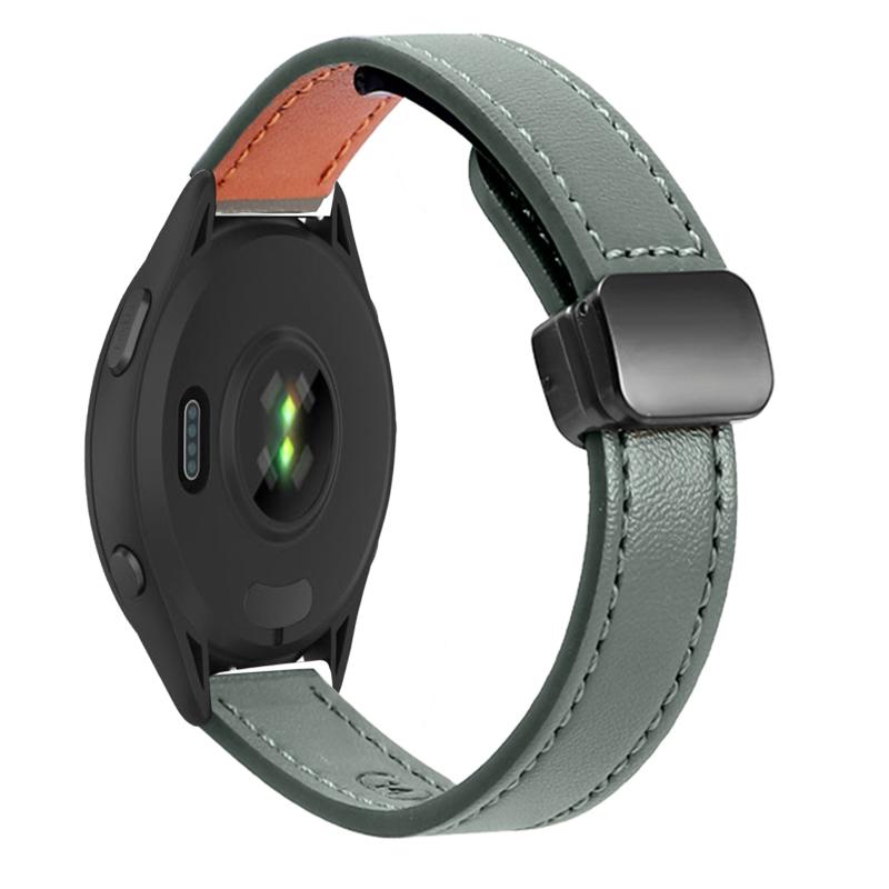For Garmin Forerunner 265 Music 22mm Slim Magnetic Buckle Microfiber Leather Watch Band(Avocado Green)