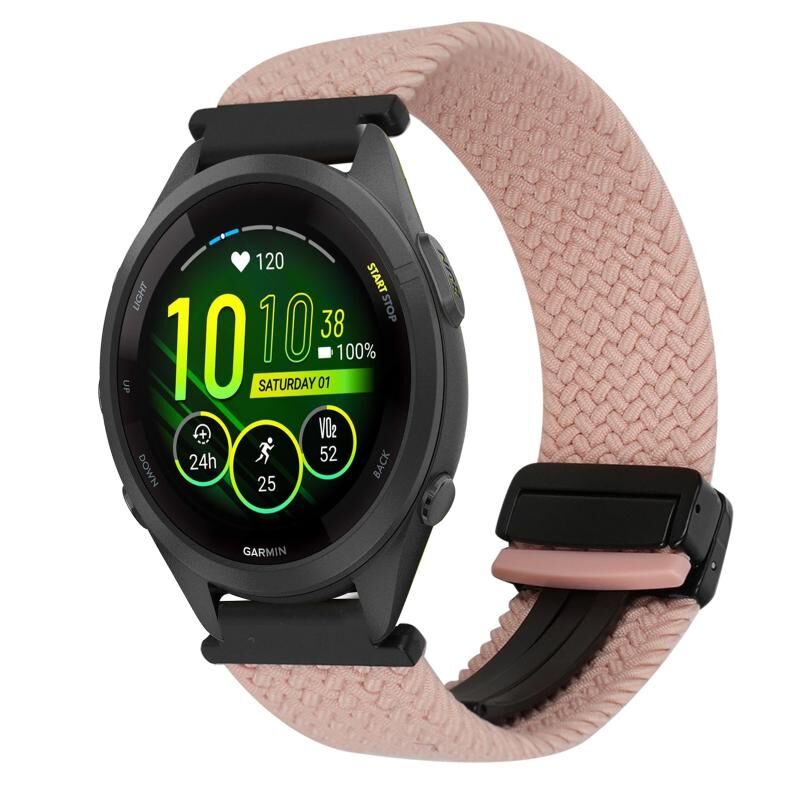 For Garmin Forerunner 265S 18mm Magnetic Buckle Braided Watch Band(Pink)