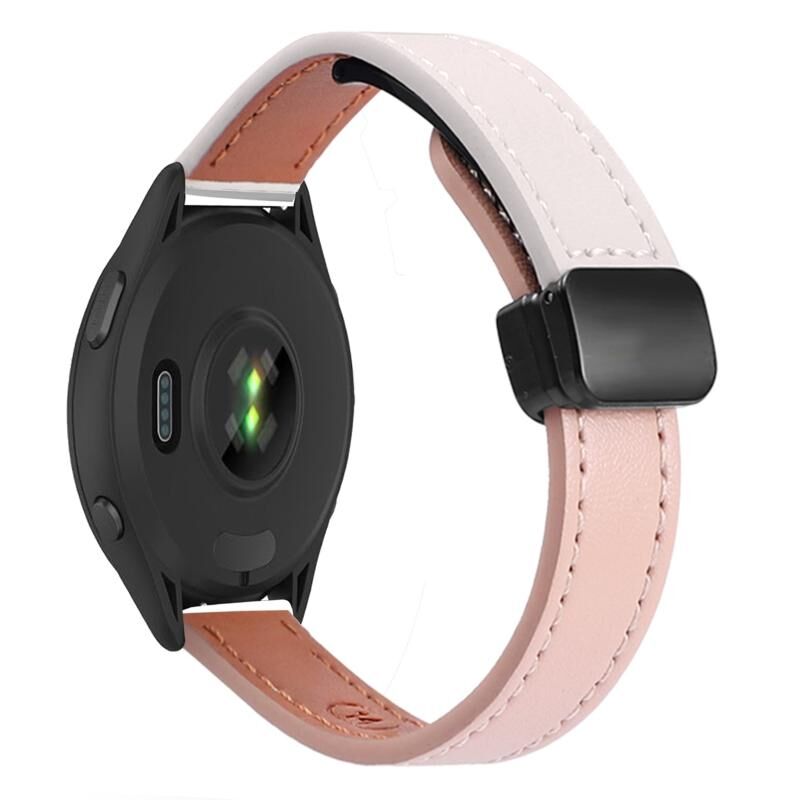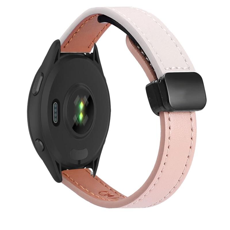 Για το Garmin Forerunner 265S 18mm λεπτό μαγνητικό λουράκι από δερμάτινο λουράκι μικροϊνών (ροζ+απρίκο)