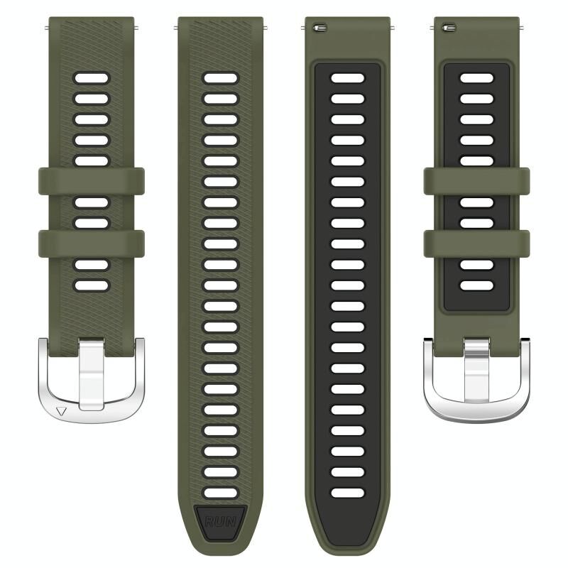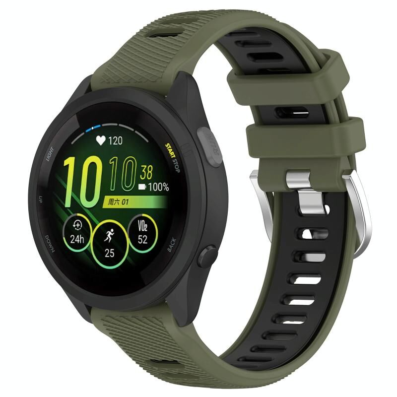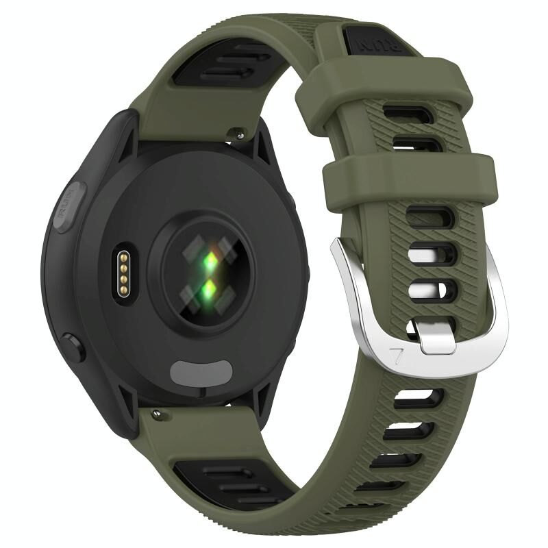 Για Garmin Forerunner 265S 18mm Αθλητισμός Δύο χρώματα χάλυβα πόρπη σιλικόνης ρολόι μπάντα (Στρατού πράσινο + μαύρο)
