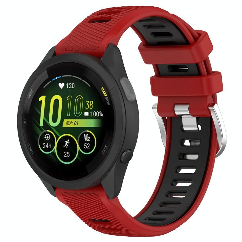Για Garmin Forerunner 265S 18mm Αθλητισμός Δύο χρώματα χάλυβα πόρπη σιλικόνης ρολόι μπάντα (κόκκινο + μαύρο)