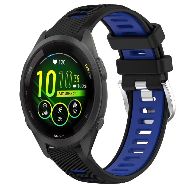 Για Garmin Forerunner 265S Music 18mm Αθλητισμός Δύο χρώματα χάλυβα πόρπη σιλικόνης ρολόι μπάντα (μαύρο + μπλε)