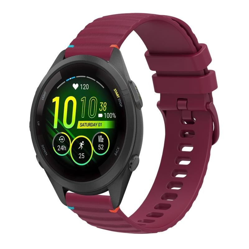 For Garmin Forerunner 265S Wavy Dotted Stitched 18mm Silicone Watch Band(Wine Red)