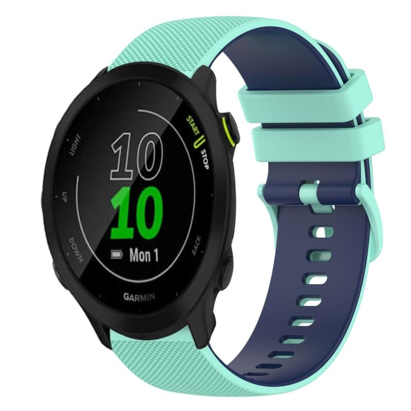 For Garmin Forerunner 55 20mm Checkered Two-Color Silicone Watch Band(Teal+Blue)