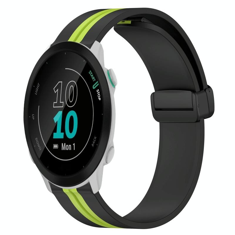 Για Garmin Forerunner 55 20mm Πτυσσόμενο μαγνητικό κούμπωμα ζώνη ρολογιού σιλικόνης (Μαύρο+Lime Green)