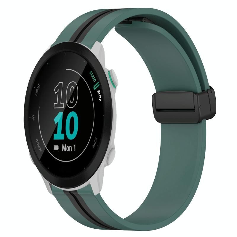 Για Garmin Forerunner 55 20mm Πτυσσόμενο μαγνητικό κούμπωμα ζώνη ρολογιού σιλικόνης (Olive Green + Μαύρο)