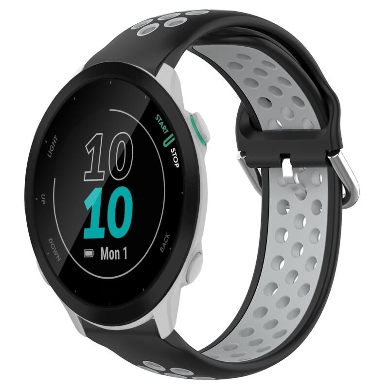 Για το Garmin Forerunner 55 20mm διάτρητο αναπνεύσιμο αθλητικό λουράκι σιλικόνης (μαύρο + γκρι)