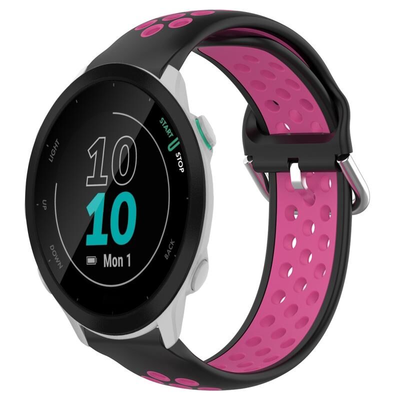 Για το Garmin Forerunner 55 20mm διάτρητη αναπνεύσιμη αθλητική ζώνη ρολογιού σιλικόνης (Μαύρο + Ροζ Κόκκινο)