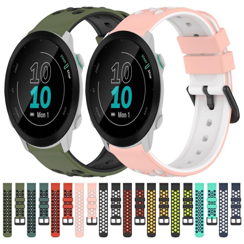Για το Garmin Forerunner 55 20 χιλιοστά δύο χρωμάτων πορώδες λουράκι σιλικόνης ρολόι (Olive Green + Μαύρο)