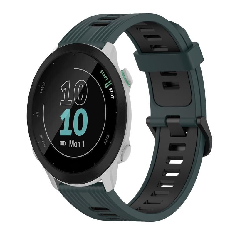 Για Garmin Forerunner 55 λουρί ρολογιού σιλικόνης 20mm με κάθετο σχέδιο και δύο χρώματα (Χακί + Μαύρο)