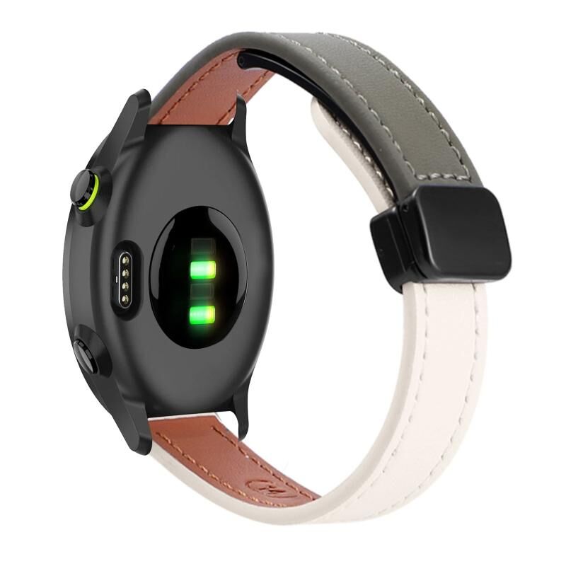 Για το Garmin Forerunner 55 Slim μαγνητική πόρπη 20 χιλιοστών δερμάτινη ζώνη ρολογιού μικροϊνών (βερίκοκο+πράσινο αβοκάντο)