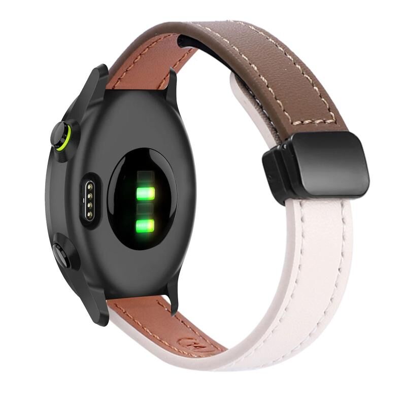 Για Garmin Forerunner 55 Slim μαγνητική πόρπη 20mm Microfiber Leather Watch Band (βερίκοκο+καραμέλα Macchiato)