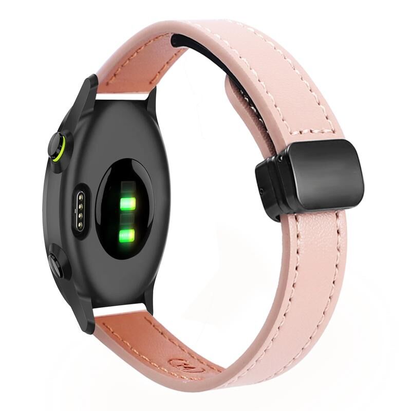 Για το Garmin Forerunner 55 Slim μαγνητική πόρπη 20 χιλιοστών δερμάτινη ζώνη ρολογιού μικροϊνών (ροζ σακούρα)
