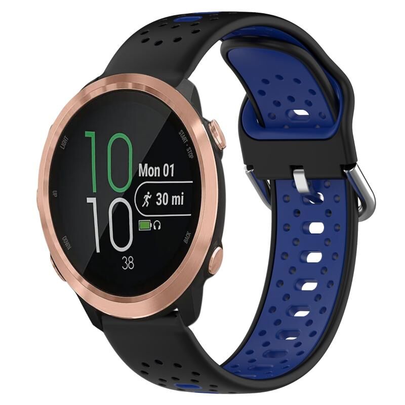 Για το Garmin Forerunner 645 Music 20mm αναπνεύσιμο σιλικόνης ρολόι σιλικόνης δύο χρωμάτων (μαύρο+μπλε)