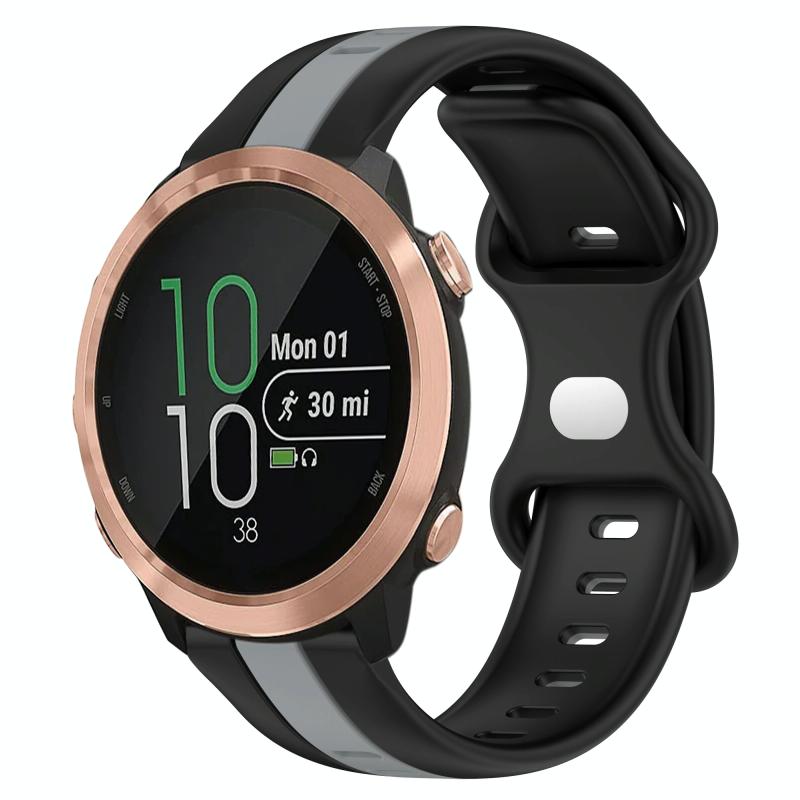 For Garmin Forerunner 645 Music 20mm Butterfly Buckle Two-Color Silicone Watch Band(Black+Grey)