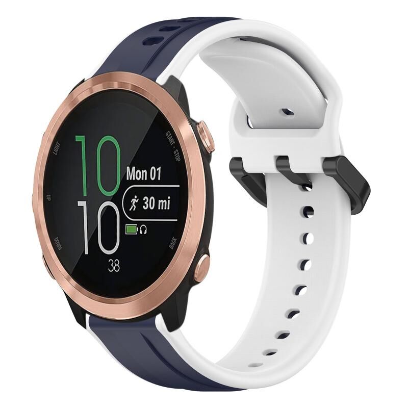 Για Garmin Forerunner 645 Music 20mm κυρτό βρόχο σιλικόνης δύο χρωμάτων ζώνη ρολογιού (Μπλε μεσάνυχτα + Λευκό)