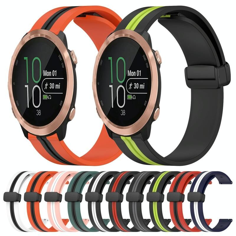 Για Garmin Forerunner 645 Music 20mm Πτυσσόμενο μαγνητικό κούμπωμα ζώνη ρολογιού σιλικόνης (μαύρο+κόκκινο)
