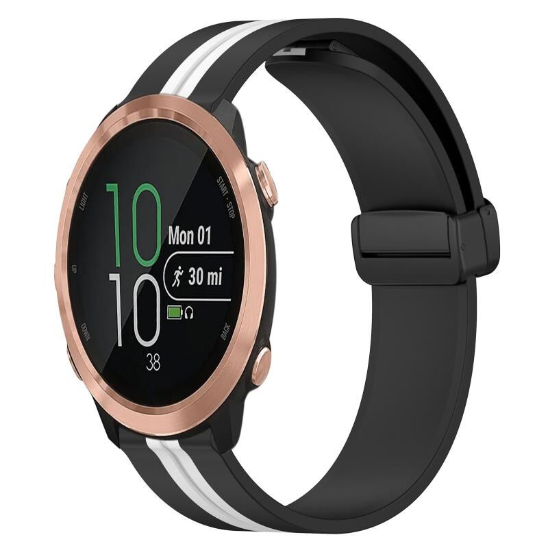Για Garmin Forerunner 645 Music 20mm Πτυσσόμενο μαγνητικό κούμπωμα ζώνη ρολογιού σιλικόνης (μαύρο+λευκό)