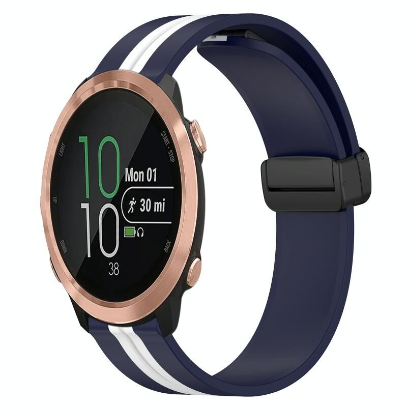 Για Garmin Forerunner 645 Music 20mm Πτυσσόμενο μαγνητικό κούμπωμα ζώνη ρολογιού σιλικόνης (Μπλε + Λευκό)