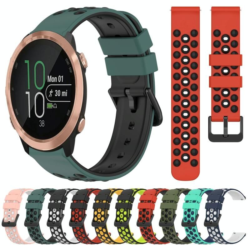 Για το Garmin Forerunner 645 Music 20 χιλιοστά δύο χρωμάτων πορώδη ζώνη σιλικόνης ρολόι (μαύρο + πράσινο χρώμα)