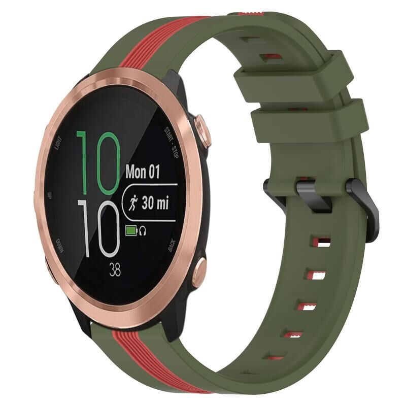 Για Garmin Forerunner 645 Music 20mm κάθετη ζώνη ρολογιού σιλικόνης δύο χρωμάτων (πράσινο στρατού + κόκκινο)