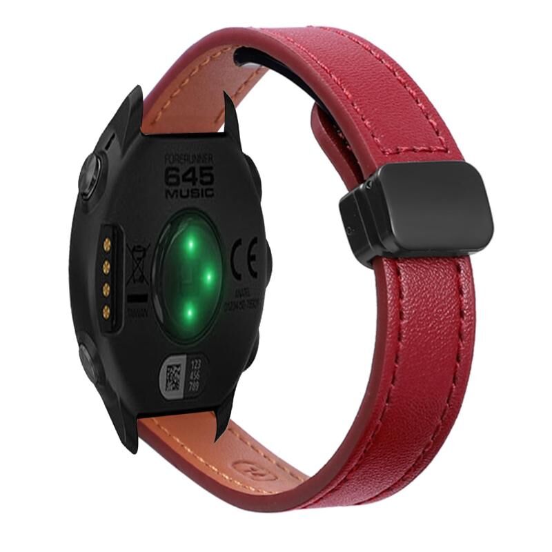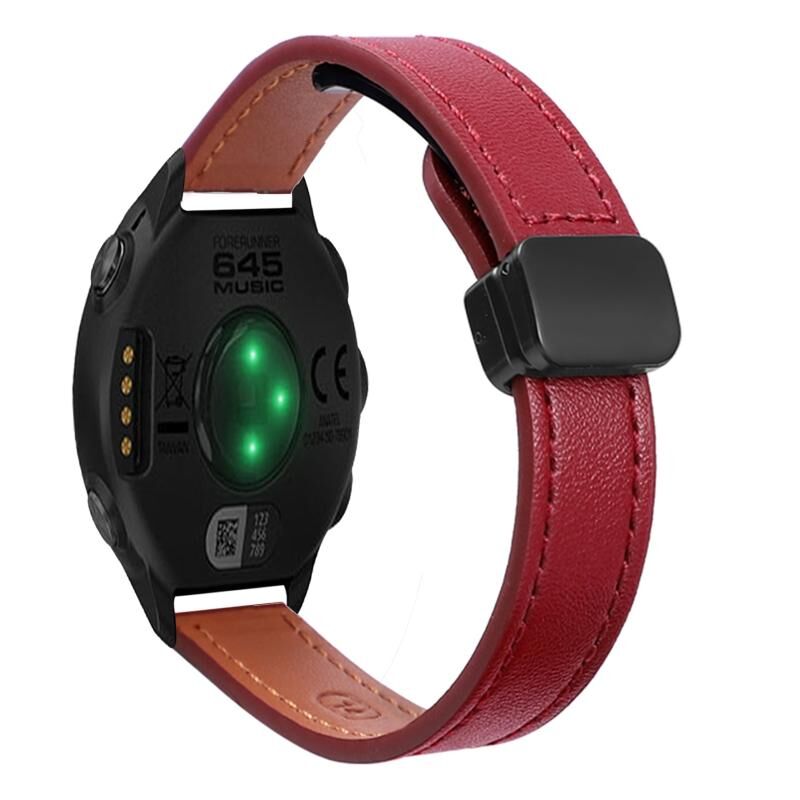 Για Garmin Forerunner 645 Music Slim Μαγνητική Πόρπη 20mm Microfiber Leather Watch Band (Wine Red)