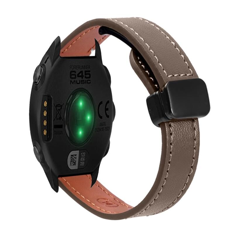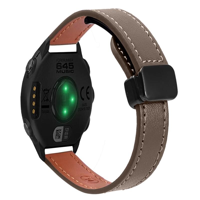 Για Garmin Forerunner 645 Slim μαγνητική πόρπη 20mm Microfiber Leather Watch Band (Caramel Macchiato)