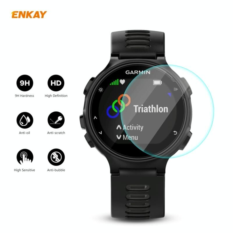 For Garmin Forerunner 735 / 735XT 2 PCS ENKAY Hat-Prince 0.2mm 9H 2.15D Curved Edge Tempered Glass Screen Protector Watch Film (ENKAY)