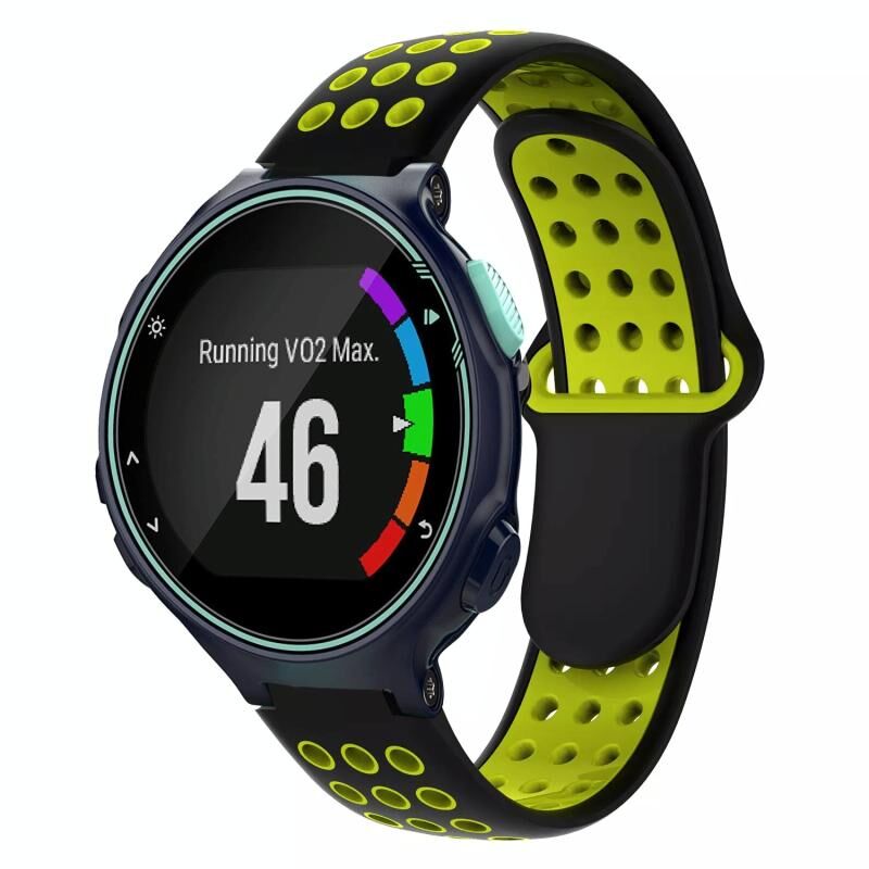 Για το Garmin Forerunner 735 / 735XT Δύο χρωμάτων διάτρητη αναπνεύσιμη ζώνη ρολογιού σιλικόνης (μαύρο + κίτρινο)