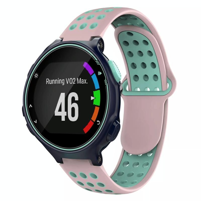 For Garmin Forerunner 735 / 735XT Two-Color Punched Breathable Silicone Watch Band(Pink+Teal)