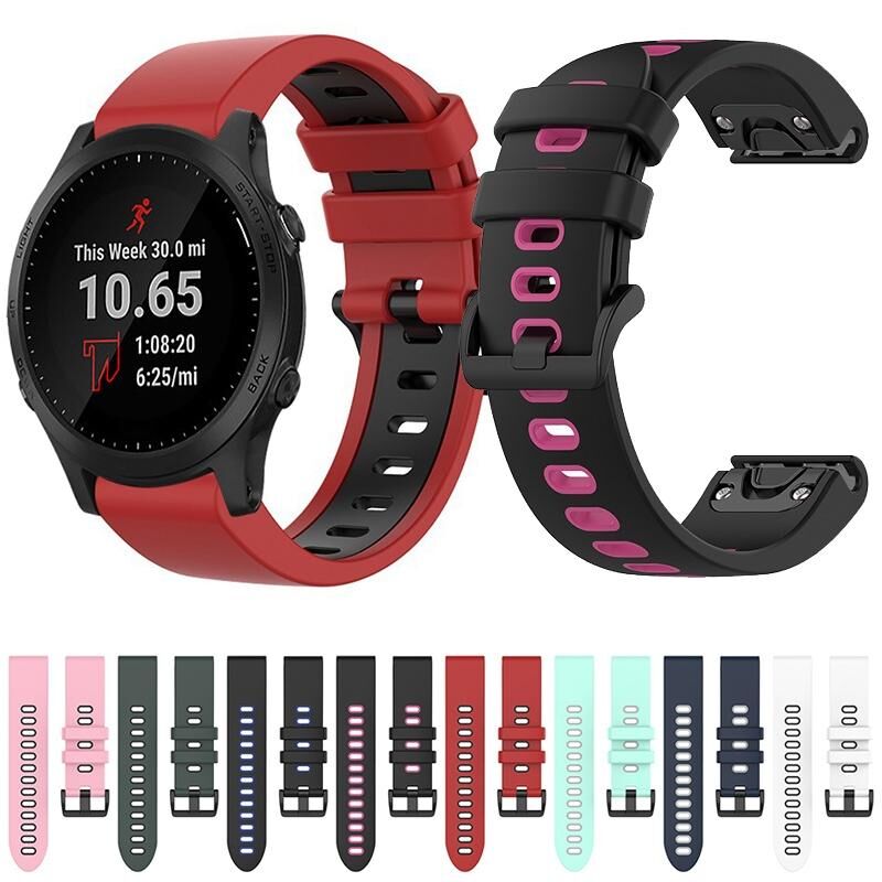 Για Garmin Forerunner 945 λουρί ρολογιού σπορ από σιλικόνη δύο χρωμάτων 22mm (Ροζ+Μαύρο)