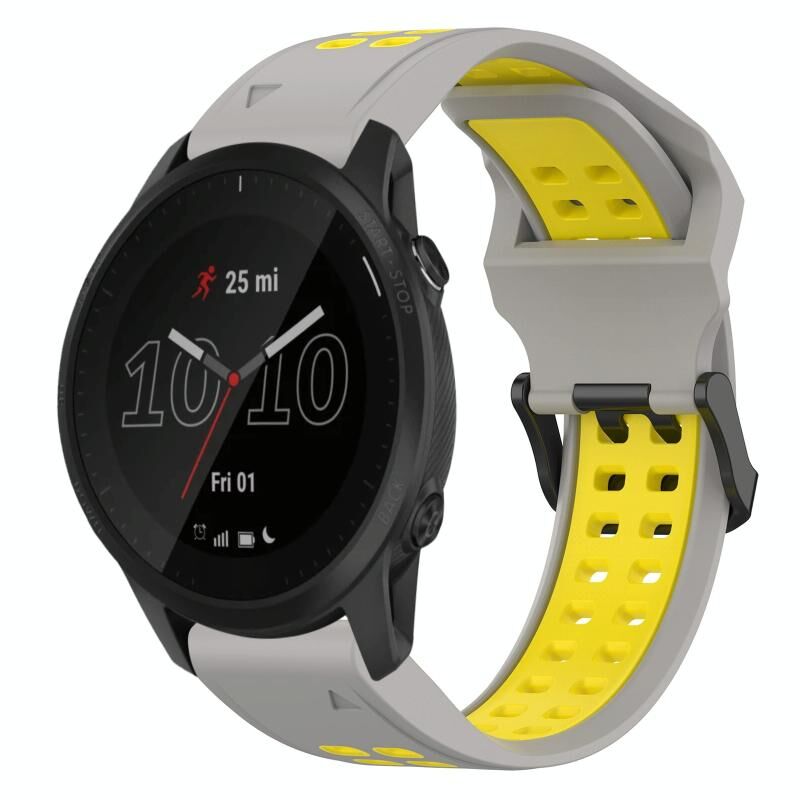 Για Garmin Forerunner 945 Δίχρωμη Αντίστροφη Κόπιτσα 22mm Ζώνη Ρολογιού Σιλικόνης (Γκρι+Κίτρινο)