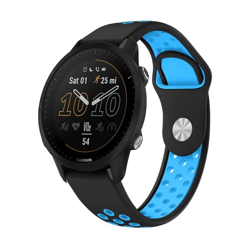 Για Garmin Forerunner 955 22mm Αθλητικό αναπνεύσιμο λουράκι σιλικόνης (μαύρο+μπλε)