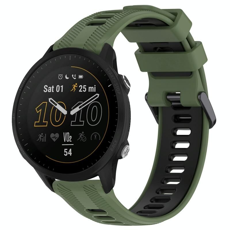 Για Garmin Forerunner 955 Αθλητικό Διχρωμικό Λουράκι Σιλικόνης (Στρατιωτικό Πράσινο+Μαύρο)