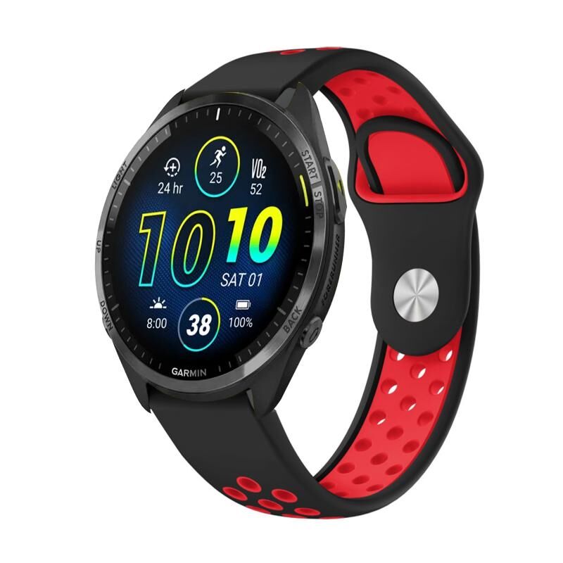 Για Garmin Forerunner 965 22mm Αθλητικό αναπνεύσιμο λουράκι σιλικόνης (μαύρο+κόκκινο)