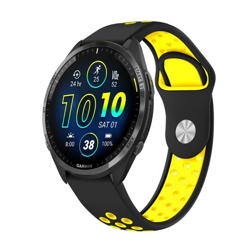 Για Garmin Forerunner 965 22mm Αθλητικό αναπνεύσιμο λουράκι σιλικόνης (μαύρο+κίτρινο)