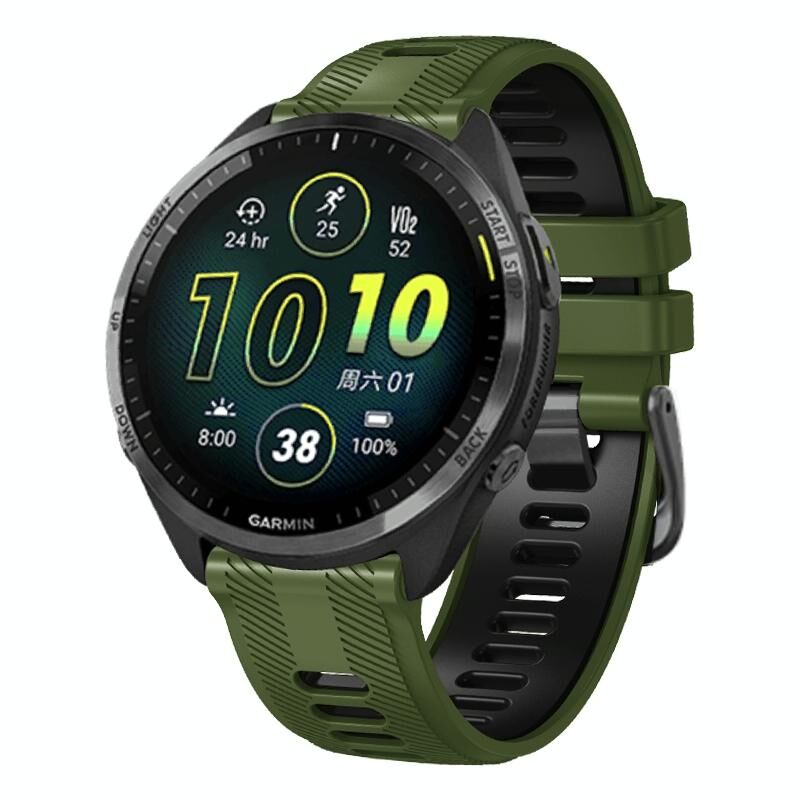 Για Garmin Forerunner 965 Δύο χρώμα χάλυβα πόρπη σιλικόνης ρολόι μπάντα (Στρατού πράσινο μαύρο)