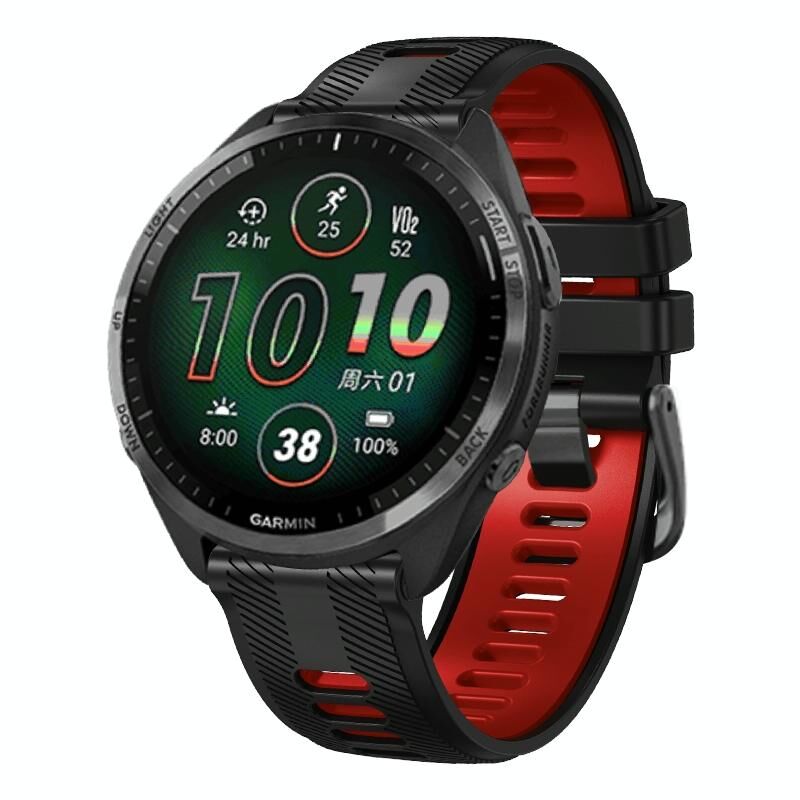 Για Garmin Forerunner 965 Δύο χρώμα χάλυβα πόρπη σιλικόνης ρολόι μπάντα (μαύρο κόκκινο)