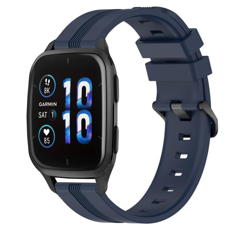 Για το Garmin Forerunner Sq2 20mm Concave Striped Slicone Watch Band (Navy Blue)