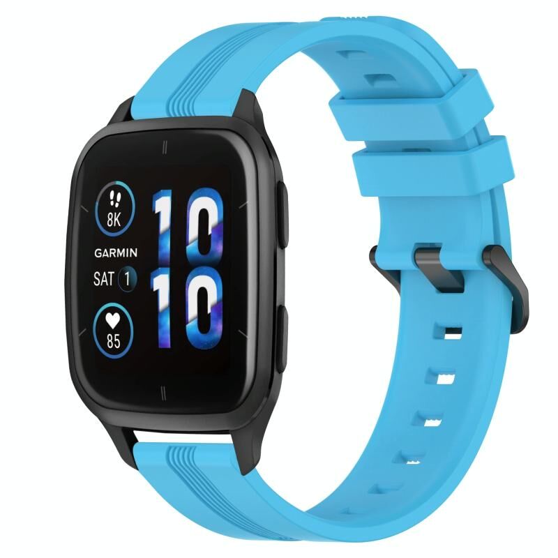 Για το Garmin Forerunner Sq2 20mm Concave Striped Slicone Watch Band (Sky Blue)