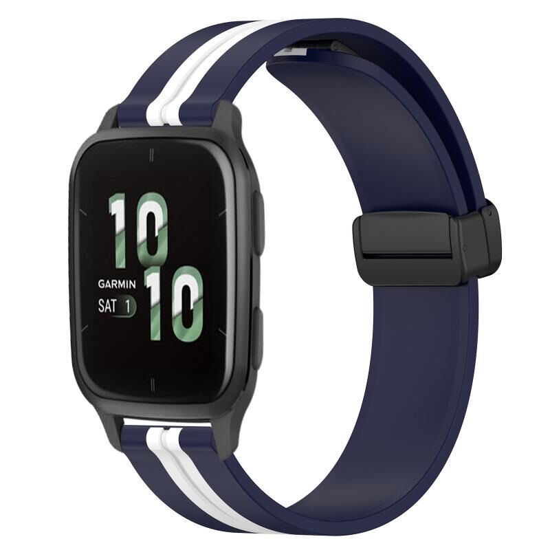 Για Garmin Forerunner Sq2 20mm Πτυσσόμενο μαγνητικό κούμπωμα ζώνη ρολογιού σιλικόνης (Μπλε + Λευκό)