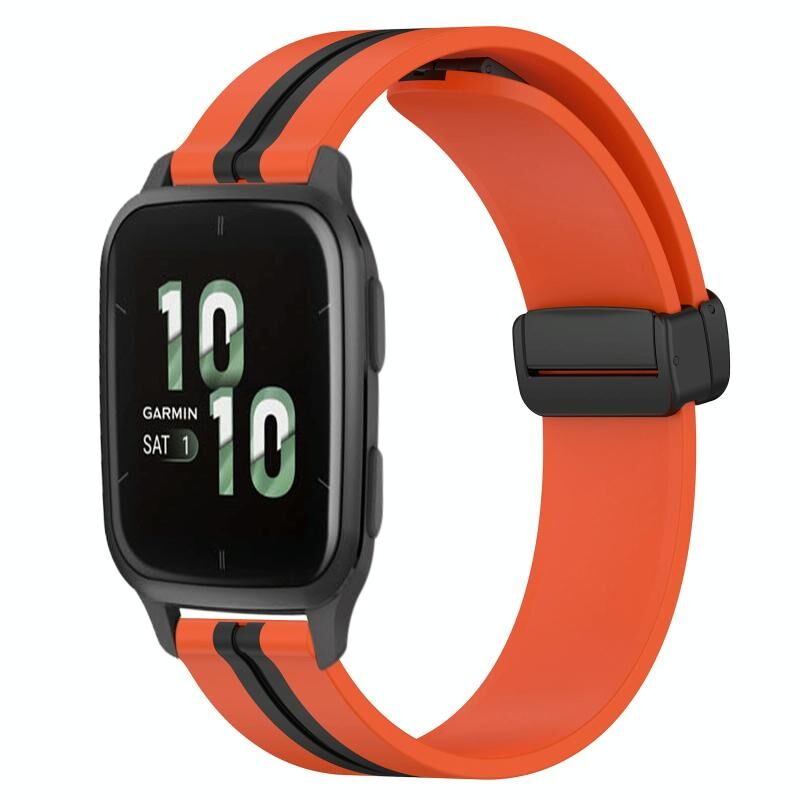 Για Garmin Forerunner Sq2 20mm Πτυσσόμενο μαγνητικό κούμπωμα ζώνη ρολογιού σιλικόνης (πορτοκαλί+μαύρο)