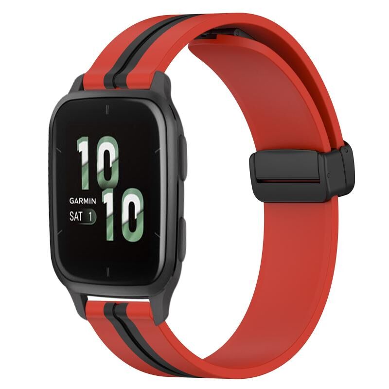 Για Garmin Forerunner Sq2 20mm Πτυσσόμενο μαγνητικό κούμπωμα ζώνη ρολογιού σιλικόνης (κόκκινο+μαύρο)