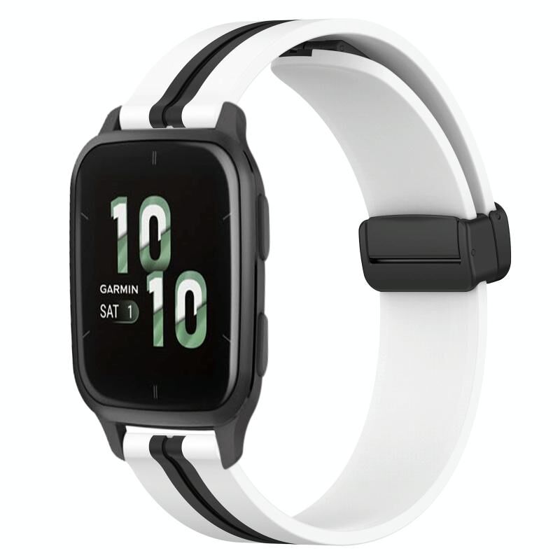 Για Garmin Forerunner Sq2 20mm Πτυσσόμενο μαγνητικό κούμπωμα ζώνη ρολογιού σιλικόνης (Λευκό+Μαύρο)
